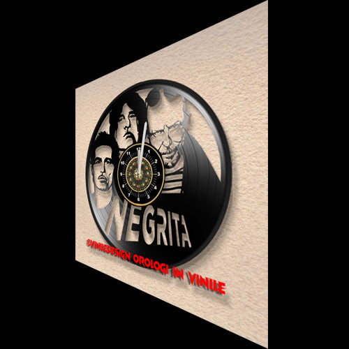 Orologio da parete in vinile 33 giri dedicato ad artisti musicali,progettato e fresato al max delle mie competenze - Movimento orologio in dotazione : Silenzioso - Tema : NEGRITA